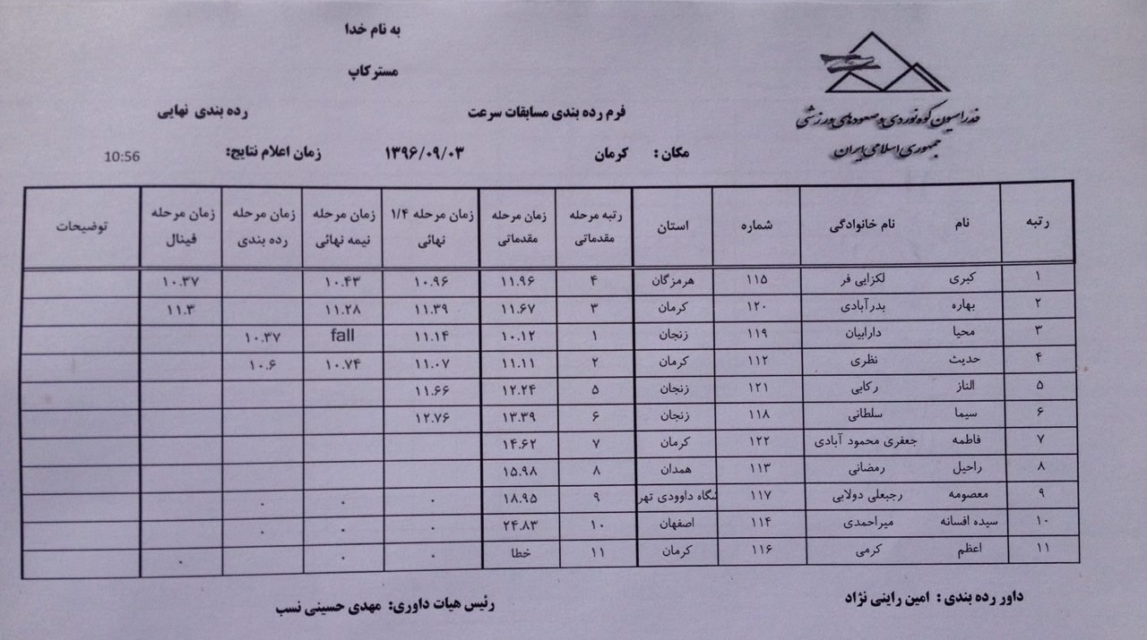 : 🔵 نتایج رقابت های ماده «سرعت»: - مقام اول: کبری لکزایی فر