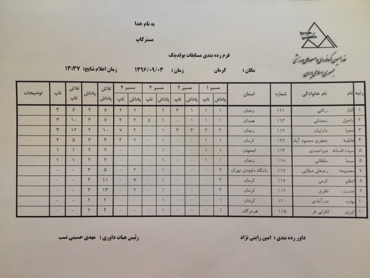 🔵نتایج رقابت های ماده «بولدرینگ»: - مقام اول: الناز