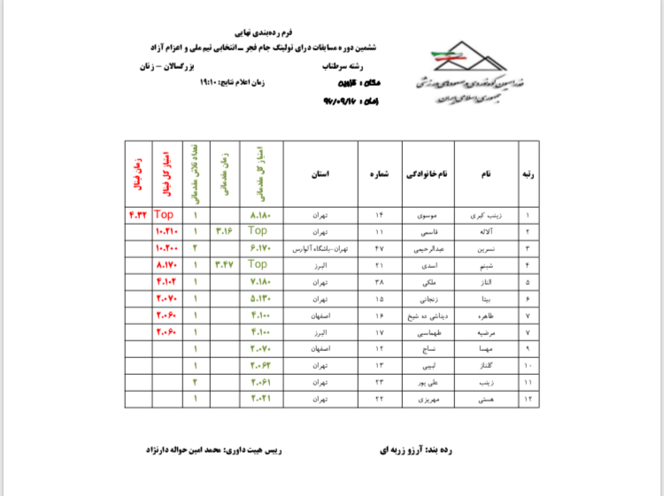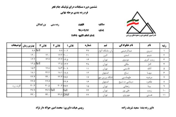 اعلام نتایج نهایی مسابقات درای تولینگ رده بزرگسالان - سرطناب (بانوان)