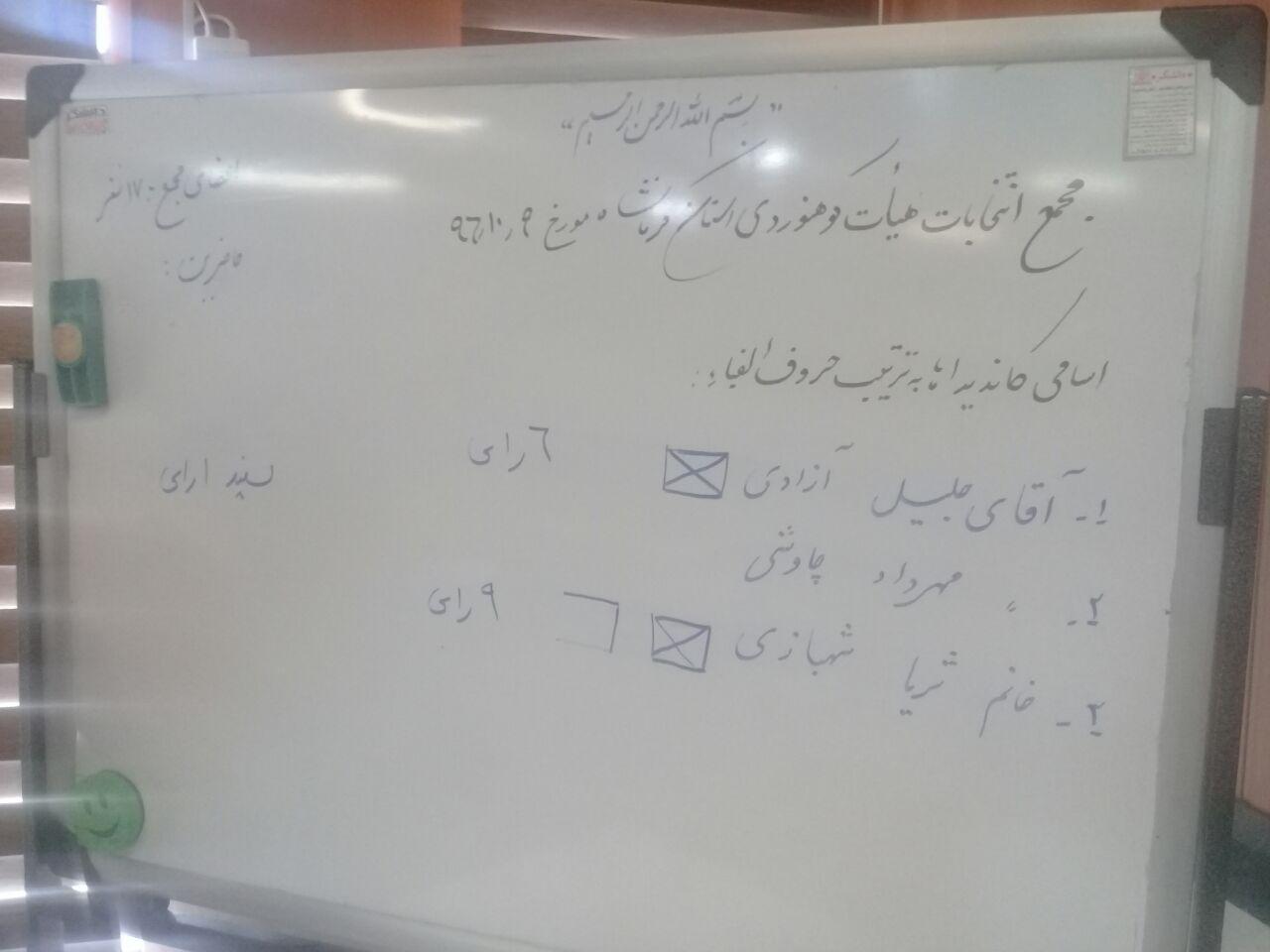 مجموع 16 رأی؛ خانم «ثریا شهبازی» با کسب 9 رأی در برابر 6 رای «جلیل آزادی» به مدت