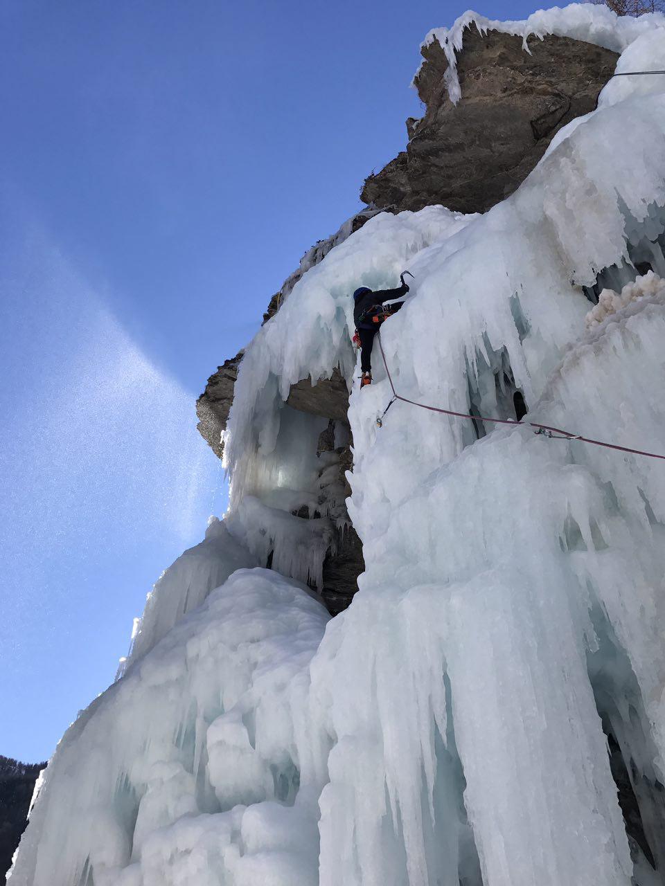 بعد از مشخص شدن گروه ها در کمپ  (حدود ۵۵ نفر در ۴ گروه) مقرر گردید که صبح بعد از صرف صبحانه نفرات به سمت مناطق معین شده حرکت کنند ،با رسیدن به ابشار یخی ها بچه ها به سرعت مشغول صعود لید  ابشار ها شدند و با به اتمام رسیدن آنها آموزش  زدن کارگاه ابالاکوف ، استقرار بر روی تبر یخ و گذاشتن میانی و... توسط كريستين به بچه ها اموزش داده شد ، بعد از تمرین نفرات مشغول درای تولینگ چند مسیر با درجه سختی  M11 و M12 شدند .با نزدیک شدن به پایان کلاس امروز اموزش صعود قندیل های یخی توسط سرپرست دوره كريستين به نفرات داده شد .
